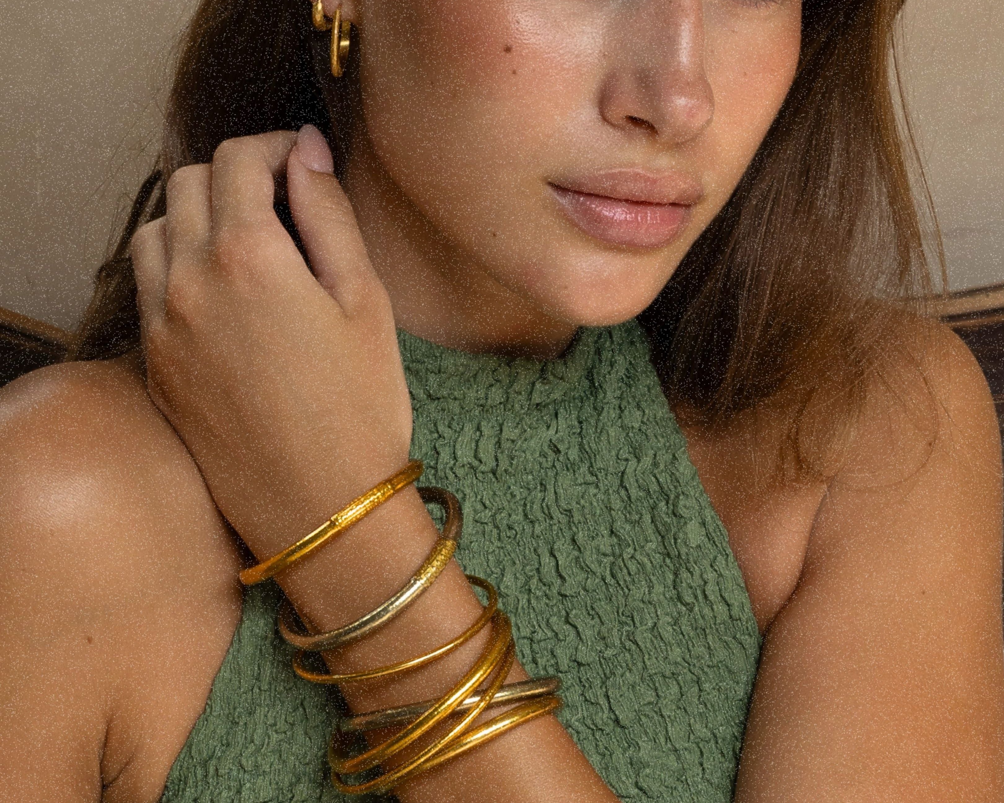 Imperméables et sans contrainte, ces joncs sont faits pour la vraie vie. Silencieux une fois portés, faciles à enfiler, ils conservent leur éclat doré lumineux—pour que vous puissiez les porter chaque jour, sans jamais les retirer.